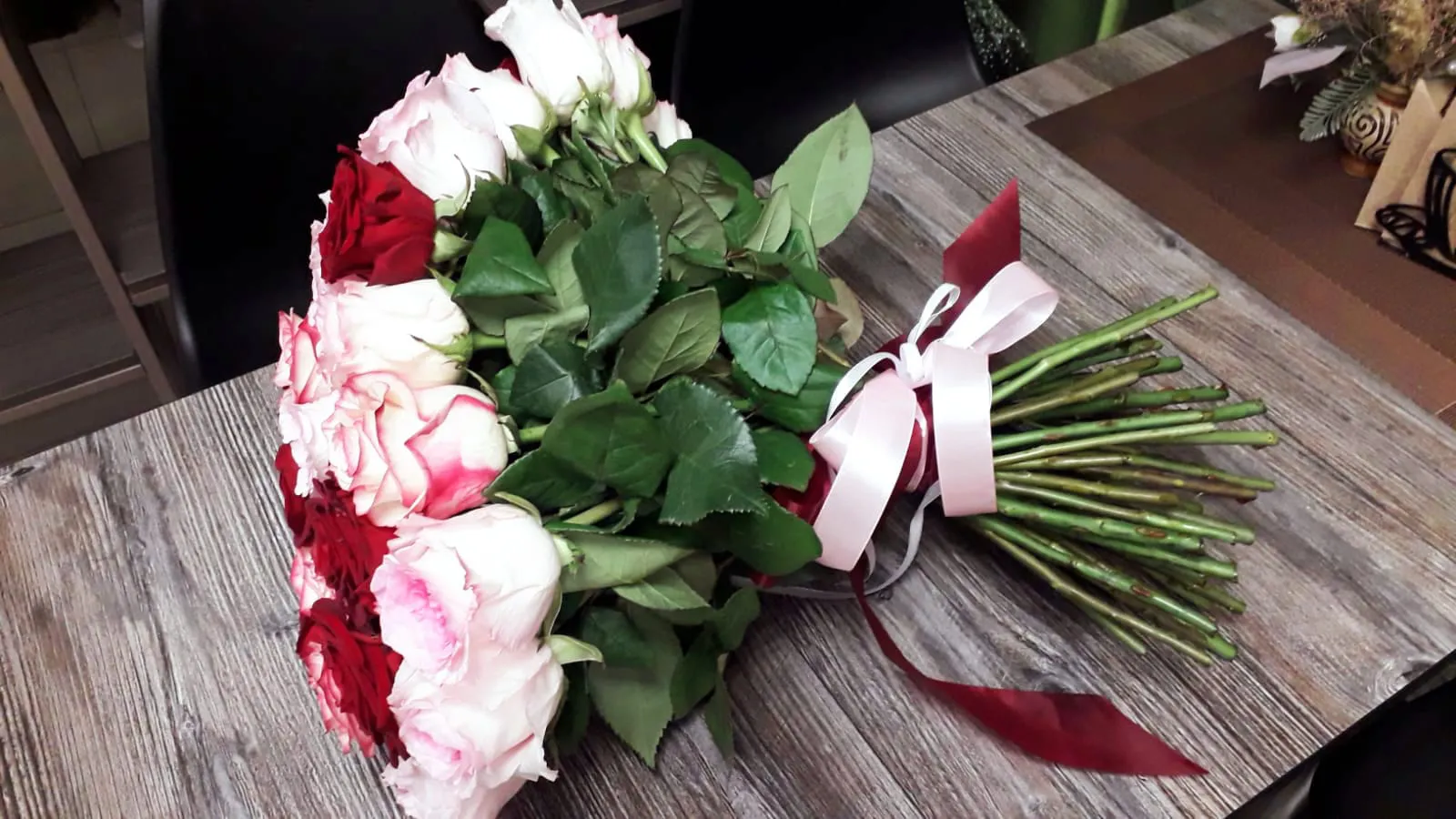 Букеты из красных и белых роз