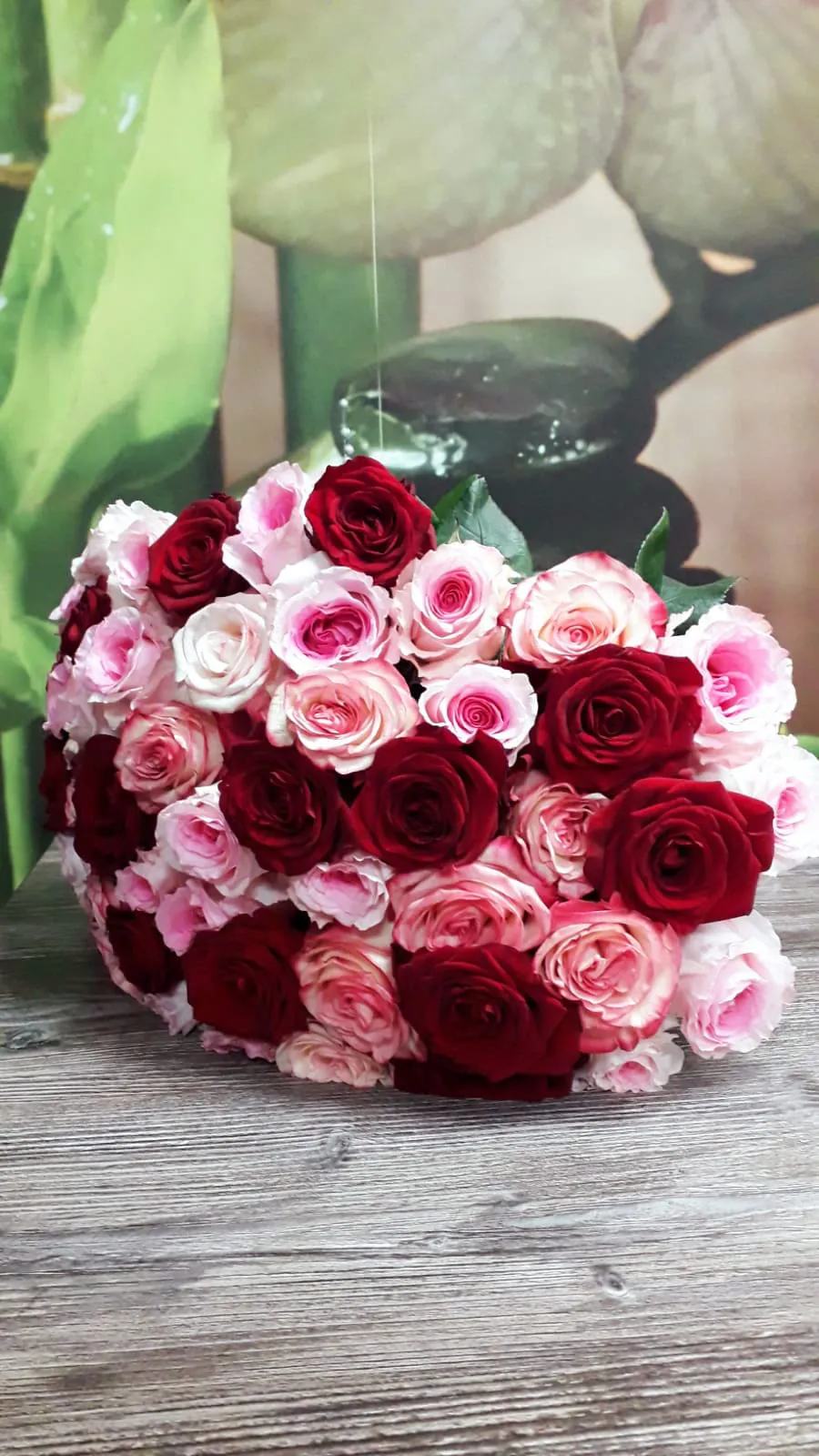 —Букет из 51 красных белых и розовых роз