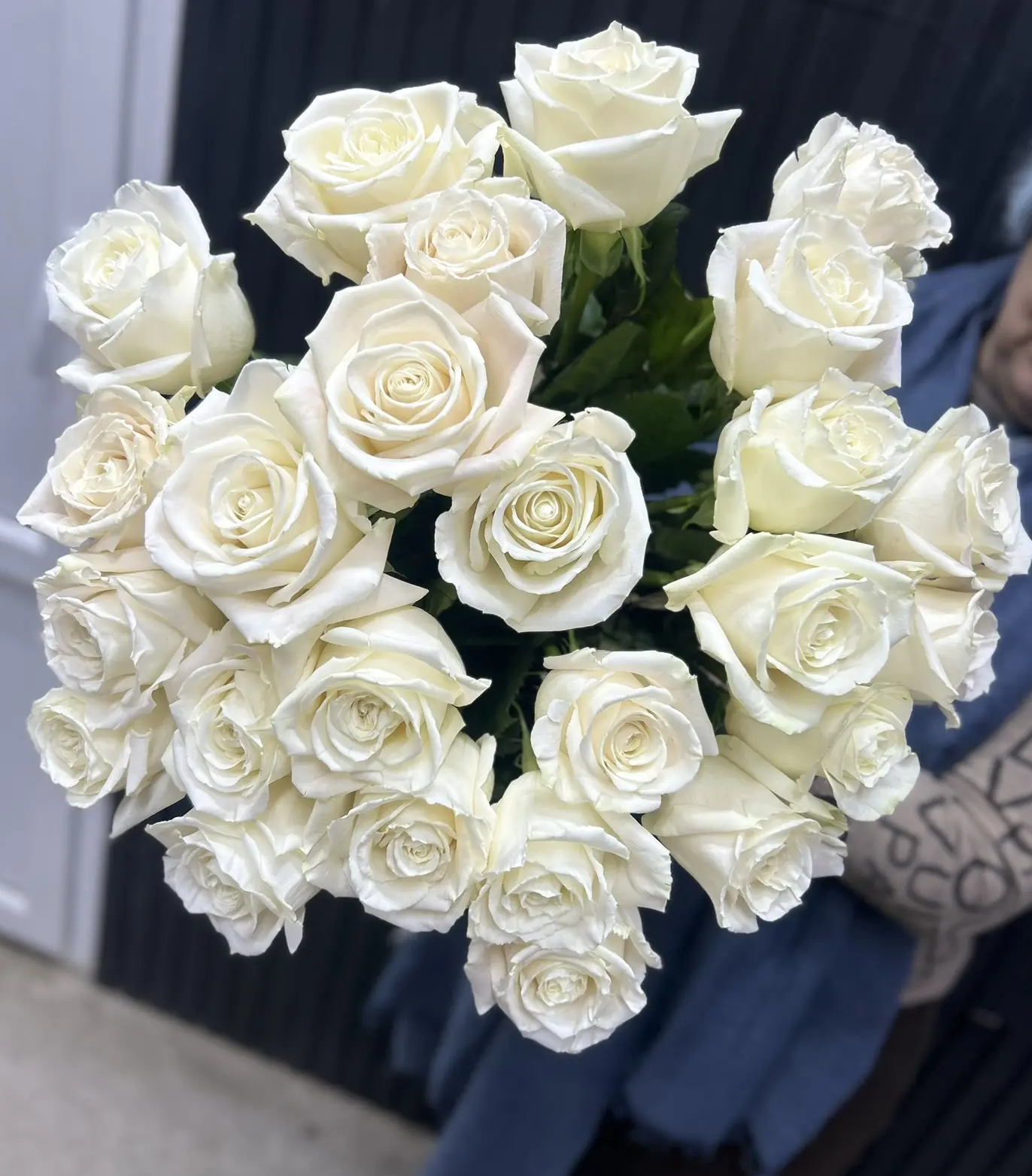 —Букет из 25 белых роз под ленту