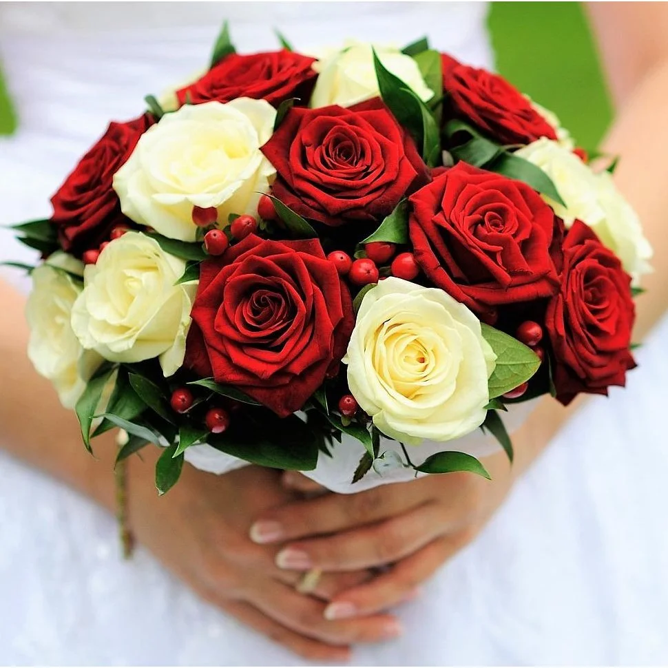 Букеты из красных и белых роз