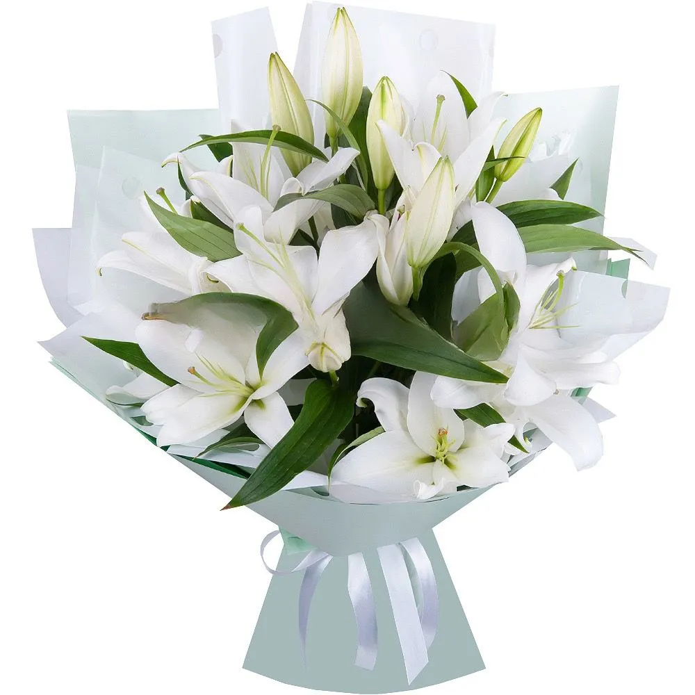 Превратите момент волшебства с помощью наших удивительных лилий. Пусть эта красота наполнит дом или офис вашего близкого человека, напоминая о вашей заботе и внимании каждый день. Каждая изящная лилия в нашем букете выращена с любовью и заботой, чтобы принести радость и восторг своему получателю. Лилии - это не просто цветы, это проявление изысканной красоты и утонченного вкуса, которые они приносят в любое помещение.